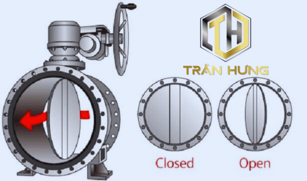 Cánh van được thiết kế kết nối với bộ phận vận hành thông qua trục van. Khi vận hành van người sử dụng chỉ cần sử dụng bộ phận vận hành điều khiển cánh van theo các góc độ khác nhau để đóng mở dòng chảy, khi cánh van tạo 1 góc 90 độ với dòng chảy thì lúc này van đang đóng 100% không cho dòng chảy đi và và người lại khi cánh van song song với dòng chảy thì lúc này van đang mở ở góc rộng nhất cho dòng chảy đi qua.